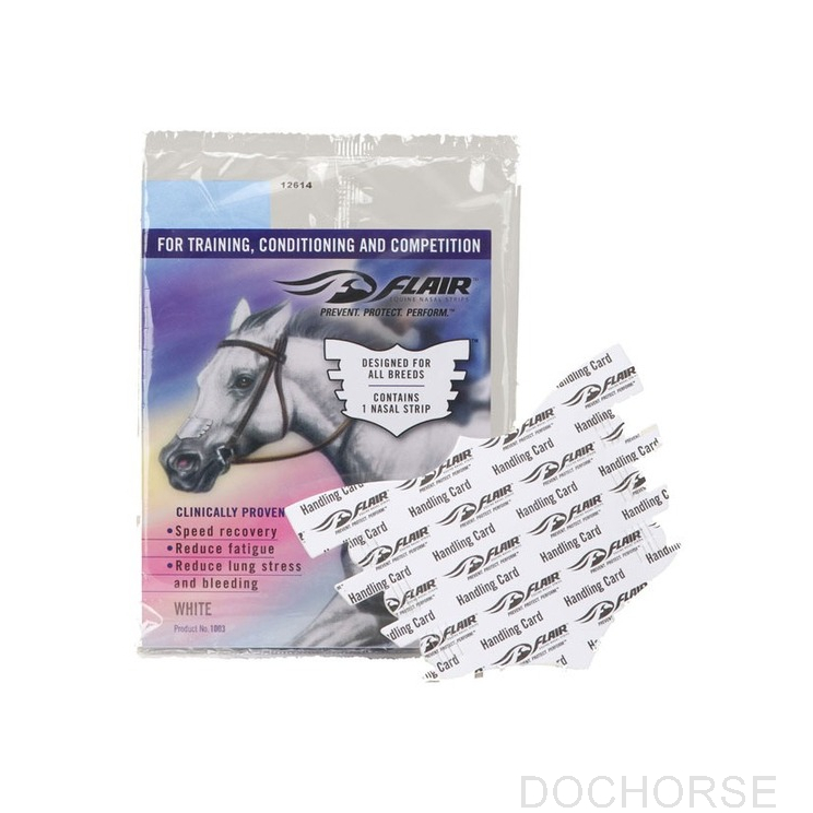Flair strips are self-adhesive strips that promote optimum respiratory health of equine athletes at all levels by reducing airway resistance and providing improved airflow when your horse needs oxygen most.