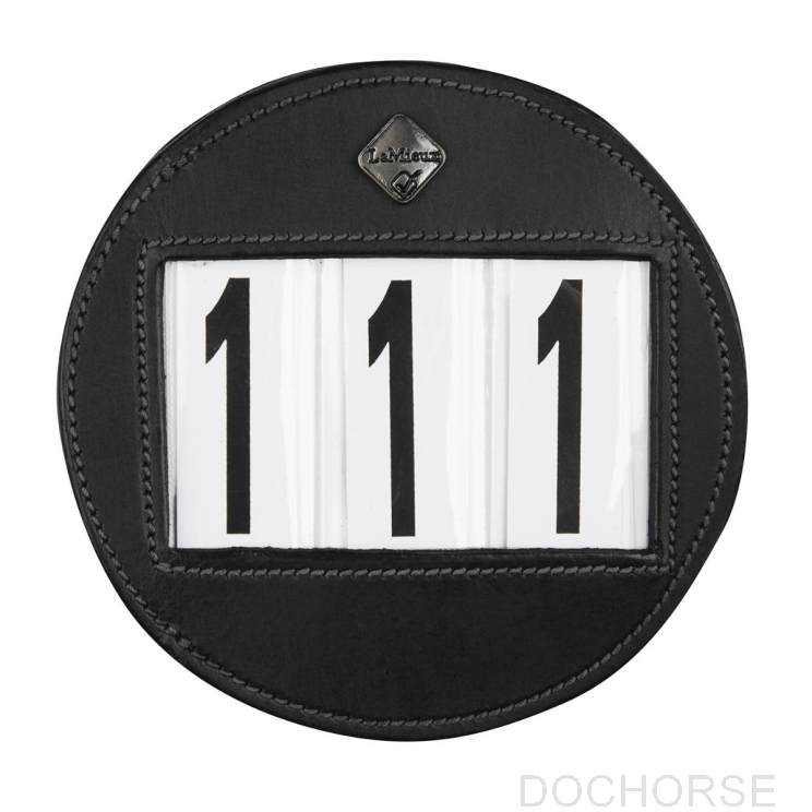 Luxury premium leather number holder for competitions. Adds a touch of class to any bridle. Hook and stud fastening loop provides a secure fit. 10 cm diameter.